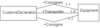 Каждое множественное соответствие дает свое имя роли. Имя роли определяется как имя терма данных в подсекции категории списка ролей. Каждое имя роли будет заменено дочерним именем класса, сгенерированным в XML/DTD или схемы XML. Использование нотации UML "+" показывает, что имя роли имеет атрибут "public". На рисунке ниже изображено альтернативное изображение UML модели.