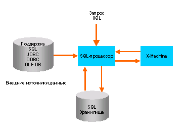 С помощью SQL-процессора реализованные в Tamino средства отображения данных в XML позволяют автоматически решать задачу их представления в виде объектов Интернет, и наоборот, информационные объекты Интернет могут стать доступными в виде реляционных данных для стандартных приложений, ориентированных на SQL. Для поддержки работоспособности SQL приложений, в состав Tamino входит SQL-процессор, обеспечивающий также и среду хранения реляционных данных. SQL-процессор поддерживает выполнение операторов SQL версии 2 в части манипулирования определения и управления данными (DML, DDL, DCL), а также выполнение ACID-транзакций. SQL-процессор получает SQL-запросы от Tamino несколькими способами: