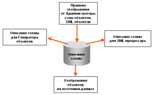 Компонент Описание схемы (Schema Description) Tamino составляет его базу знаний, содержащую правила отображения, хранения и конструирования объектов XML. Правила построения объектов основаны на информации о схеме данных, поддерживаемой администратором сервера. Правила используются для: