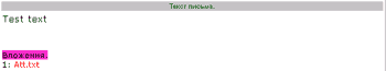 Если в сообщении есть вложения, то: <td> <% If ofMsg.Attachments.Count > 0 Then %> <img src="images/att.gif" border=0 alt="С письмом(возможно пришли файлы)!"> <% Else %> <img src="images/att0.gif"> <% End If %></center> </td> Пишем время сообщения: <td> <%= ofMsg.TimeReceived %> </td> Тема сообщения: <TD> <% If ofMsg.Subject = "" Then %> Без темы <% Else %> <%= ofMsg.Subject %> <% End If %> </TD> И напоследок размер сообщения: <TD> <%= ofMsg.Size %> </TD> ' Идем к следующему сообщению </TR> <% Next %> Вот, собственно, и все. Результат выглядит примерно так: 3. Чтение почтового сообщения.Текст письма. ' делаем активным, например, первое сообщение <% Set ofMsg = objMessages.Item(1) %> ' если необходимо, обрабатываем текст сообщения <% Dim tre tre = Mid(ofMsg.HTMLText, InStr(ofMsg.HTMLText, "</HEAD>")+7) tre = Replace(tre, "</BODY>", "") tre = Replace(tre, "</HTML>", "") %> ' выводим <%= tre%> Если в почтовом сообщении есть вложения, то: