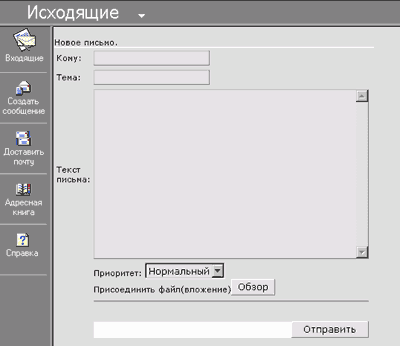Теперь рассмотрим создание почтового сообщения. 4. Создаем новое письмо (файл newmail.asp)Форма для почтового сообщения (упращенная):