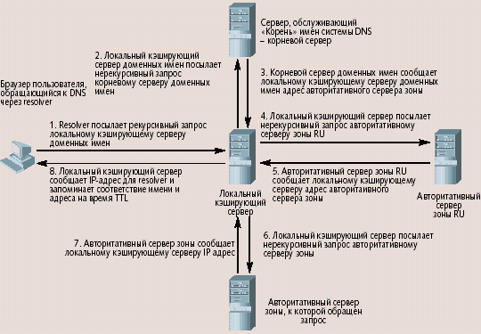 Среди ИТ-специалистов все более популярным сегодня становится вопрос разработки систем распространения контента (content distribution system), на успех работы которых очень влияет размещение информационных серверов. Речь идет о таком размещении серверов, при котором время доступа было бы если не минимальным, то хотя бы приемлемым, т.е. отвечающим соглашению об уровне обслуживания (service level agreement — SLA). Фактически, требуется в единицу времени обслужить максимальное число пользователей при заданном времени обслуживания каждого. Так, для Web-страниц таким ограничивающим фактором будет приемлемое время загрузки страницы браузером, которое складывается не только из времени передачи данных по сети и времени их интерпретации, но также и времени, затраченного на поиск IP-адреса сервера, в том числе, и из времени обращения к службе Системы Доменных Имен (DNS). Мой адрес не дом и не улица...Система доменных имен Internet — ключевая служба, на которую замыкаются адреса информационных ресурсов, а точнее их идентификаторы Uniform Resource Identifier [1]. Как отмечено в [2], документе, посвященном роли системы доменных имен, архитектура DNS оставалась неизменной с момента своего создания, в то время как ее функции существенно изменились: коммерциализация Сети привела к существенному «уплощению» иерархии доменных имен. Владельцы ресурсов предпочитают использовать домены второго уровня в рамках национальных доменов или доменов общего назначения (например, microsoft.com), а не закапываться вглубь иерархии имен. Кроме того, начиная с 90-х годов, DNS стали использовать в качестве инструмента балансировки нагрузки серверов информационных ресурсов, эксплуатируя для этого алгоритм Round Robin, который применяется серверами доменных имен при ответе на запросы клиентов. Ни первое, ни второе при проектировании системы доменных имен не предполагалось (во всяком случае, в основополагающих документах [3] и [4] этого не указано). Напомним типовую схему поиска IP-адреса по доменному имени. Браузер через механизм resolver обращается к локальному кэширующему серверу доменных имен с рекурсивным запросом. Этому серверу передается доменное имя, для которого нужно найти IP-адрес. Сам браузер IP-адрес не ищет, а перепоручает это локальному кэширующему серверу доменных имен; в этом может убедиться каждый, кто сам настраивал подключение своего компьютера к Сети. При подключении через провайдера, например, по коммутируемому соединению, этого делать не нужно: сеть настраивается в большинстве случаев автоматически (в момент автоматической настройки провайдер по протоколу PPP присылает IP-адреса серверов доменных имен, которые будут выполнять рекурсивные запросы пользователя). На схеме (см. рис. 1) указаны два типа запросов: рекурсивный и нерекурсивный. В первом случае клиент перепоручает поиск IP-адреса серверу, а втором — сам производит опрос серверов. Локальный кэширующий сервер самостоятельно опрашивает все серверы доменных имен; поэтому он обменивается с ними нерекурсивными запросами. В системе доменных имен установлена жесткая иерархия. Начинается она с корня. Затем следуют домены верхнего уровня (Top Level Domain, TLD), например, .com, .org, .net, .ru и т.п. Далее следуют домены второго уровня, например, nic.ru, vesti.ru и т.п. Каждый домен поддерживается авторитарным сервером домена и, как правило, не одним. При этом сервер, поддерживающи