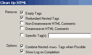 Раздел Clean Up Word HTML появилась только в третьей версии DreamWeaver (жаль что не раньше). Те кто видел КАКОЙ HTML (с позволения сказать) выдает Word2000 (да и 97 не лучше) и какого размера получаются файлы из этого "HTML-а" - те меня поймут. Для остальных простая статистика - обработка файлов, сохраненных как веб-страница в Word уменьшает их размер в среднем в 4-5 раз (а то и все 10) не ухудшая качество внешнего вида документа.