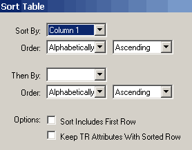 Команда Sort Table поможет вам сделать сортировку данной колонки (или ряда) по заданной формуле. Очень удобно для различных алфавитных списков и т.д.