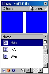 Мы разобрались с "электронными" часами. Попробуем сделать часы "со стрелками": Создаем новый файл размером 100 х 100 px. Вставляем новый слой и в свойствах называем слои соотвественно Arrows и Grid. Разумно, чтобы стрелки были расположены над циферблатом: ![]() На слое Grid рисуем сам циферблат. Здесь разметка. Далее создаем три новых символа с часовой, минутной и секундной стрелками. (Учтите, что поворачиваться "стрелки" будут относительно центра, помеченного "крестиком"). Назовем их соответсвенно HArr, MArr и SArr: ![]() Помещаем символы на слой Arrows и в разделе Instance присвоим им имена HA, MA и SA: ![]() Для первого кадра слоя Arrows в панели ActionScript (не забудьте установить режим ExpertMode) пишем следующий код: