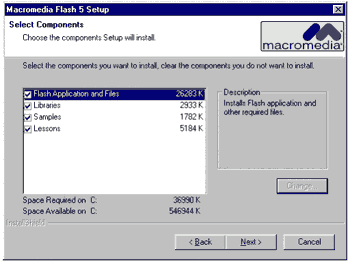 1. Установка редактора Macromedia FlashНа данный момент последней версией flash-редактора является Flash 5, поэтому все дальнейшее описание относится именно к нему. Первым шагом является получение установочного комплекта, для чего можно обратиться к дистрибьютерам компании Macromedia или скачать полнофункциональную пробную версию, рассчитанную на использование в течении тридцати дней, с сайта Macromedia. Также сразу же советуем скачать последнюю версию шаблонов публикации фильмов. Кроме данного программного обеспечения существует еще достаточно большое количество различных вспомогательных средств, краткое описание которых приведено в таблице. Таблица: Основные инструментальные средства для работы с flash-технологиями.
