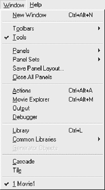 Пункты меню Windows: