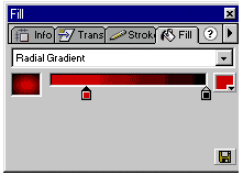 3. Создание простых flash-фильмовИтак, все настройки сделаны, можно приступать к созданию нашего первого flash-фильма, который, как мы уже заметили ранее, должен быть заставкой к нашему персональному сайту. Насколько он будет художественным и стильным во многом зависит от вас и ваших дизайнерских способностей, ваших идей и конечно качества реализации. Вопросам создания векторных изображений с использованием графических инструментов редактора Macromedia Flash можно посвятить не одну главу. Заинтересованные читатели могут обратиться по этому вопросу к одной из лучших книг по flash-технологиям: Грибов Д. Е. "Macromedia Flash: интерактивная WEB анимация". Мы рассчитываем на то, что каждый из вас хоть раз пользовался каким-либо растровым редактором: Paint, Imaging, Photoshop, Corel Photo Paint или, еще лучше, векторным: Corel Draw, Corel Xara, Adobe Illustrator. Опытный читатель сможет достаточно быстро освоится с панелью инструментов Macromedia Flash самостоятельно, поэтому мы сразу приступим к созданию простейшего flash-ролика, а все нюансы по принципам рисования оставим на потом. Среди российских разработчиков уже давно сложился принцип освоения новых технологий "нажимай - смотри - делай выводы", так что и мы воспользуемся этим золотым правилом. Итак, приступим. Первым шагом при создании любого сайта, в том числе и на Flash, является композиция. Учитывая, что мы хотим сделать мультимедиа-заставку для нашего персонального сайта, то остановимся на варианте размещения главного логотипа в центре, интерактивных навигационных элементов снизу по краям, вспомогательного окружения по периметру рабочей зоны. В качестве элементов логотипа используем заранее подготовленные фотографии в формате jpg и анимацию в формате gif. Учитывая, что цвет фона HTML-страницы, куда будет вставлен flash-ролик - черный, первым делом надо обеспечить плавный переход от цвета фона flash-ролика (если он отличен от выбранного для страницы) к фону HTML-страницы. Это можно сделать при помощи такого инструмента, как градиент. Используя инструмент Oval, нарисуем в центре рабочей зоны овал, оставив слева и справа по 20 пикселей, зальем его красным цветом (настроив инструмент Fill Color). Отцентрируем полученное изображение с помощью набора инструментов Align (включенная опция ToStage обеспечивает центрирование внутри рабочей зоны). Далее, выделив созданный овал щелчком мыши, применяем к нему операцию градиентной заливки, для чего выделяем в инспекторе Fill опцию Fill и выберем тип заливки - Radial Gradient. Дальше остается подобрать только цветовую гамму и насыщенность градиентного перехода.
