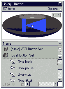 Чтобы добавить кнопки, добавим отдельный слой и назовем его buttons. Дальше в меню Windows выберем пункт Common Libraries - Button. В открывшейся библиотеке кнопок выберем наиболее понравившиеся и путем перетаскивания разместим их в нужном месте нашего flash-фильма (в принципе, кнопки можно нарисовать и самому). Для того, чтобы отредактировать кнопки из библиотеки, необходимо два раза кликнуть на ее изображении левой кнопкой мыши и в открывшемся отдельном рабочем окне отредактировать необходимые параметры кнопки (цвет, надписи и т.п.).