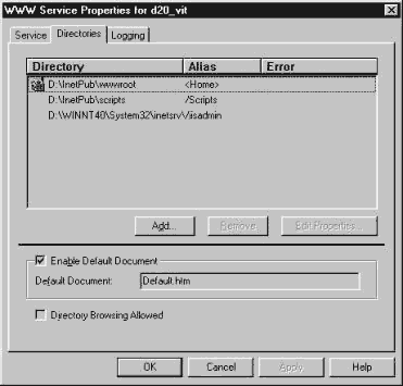 Рис. 2.6. Каталоги Web-сервера По кнопкам Add: и EditProperties: для каждого каталога выводится диалог его настройки: