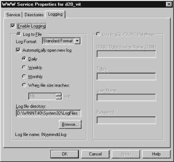 Так для выполнения командных процедур нужно добавить значение (AddValue) соответствия типа файла .CMD и команды вызова С:\WINNT\SYSTEM32\CMD.EXE /C %s %s. Следующей идет вкладка Logging(рисунок 2.8). На ней доступны следующие опции: