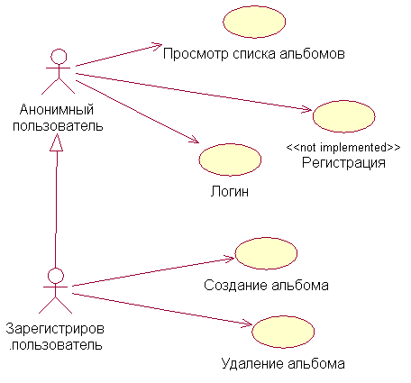 Для наглядного примера можно создать несколько новых альбомов под одним из пользователей, а потом зарегистрироваться под другим. Ссылки «удалить» будут проставлены только у «своих» альбомов, кроме того попытки удаления чужих альбомов через непосредственное редактирование get запросов приведут к странице с ошибкой.