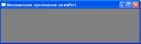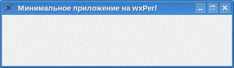 Минимальное приложение на wxPerlТеперь, когда wxPerl установлен, можно опробовать его в действии. Тестовое приложение состоит из двух файлов (файлы должны находиться в одной директории). wx-minimal.pl: #!/usr/bin/perl # # Александр Симаков, <xdr (тчк) box на Google Mail> # http://alexander-simakov.blogspot.com/ # # Простейшая программа использующая wxPerl # use strict; use warnings; use FindBin; use lib "$FindBin::Bin"; use Wx; use MinimalApp; sub main() { # Создаём экземпляр приложения и ... my $minimal_app = MinimalApp->new(); # ... запускаем цикл обработки событий. $minimal_app->MainLoop(); } main(); MinimalApp.pm: package MinimalApp; # # Александр Симаков, <xdr (тчк) box на Google Mail> # http://alexander-simakov.blogspot.com/ # # Минимальный класс приложения wxPerl # use strict; use warnings; use utf8; use encoding 'utf8'; use Wx; use base qw{ Wx::App }; sub OnInit { # Создаём окно my $frame = Wx::Frame->new( undef, # Родительское окно -1, # ID окна (-1 значит сгенерировать автоматически) 'Минимальное приложение на wxPerl', # Заголовок окна [ -1, -1 ], # Позиция окна (значение по умолчанию) [ 450, 100 ], # Размер окна ); # Отображаем его на экране $frame->Show( 1 ); } 1; Вот как выглядит результат запуска этой программы: