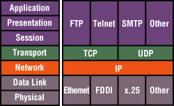 Отображение служб TCP/IP на семиуровневую модель OSI