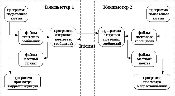 2.1. Принципы организацииЭлектронная почта во многом похожа на обычную почтовую службу. Корреспонденция подготавливается пользователем на своем рабочем месте либо программой подготовки почты, либо просто обычным текстовым редактором. Обычно программа подготовки почты вызывает текстовый редактор, который пользователь предпочитает всем остальным программам этого типа. Затем пользователь должен вызвать программу отправки почты (программа подготовки почты вызывает программу отправки автоматически). Стандартной программой отправки является программа sendmail. Sendmail работает как почтовый курьер, который доставляет обычную почту в отделение связи для дальнейшей рассылки. В Unix-системах программа sendmail сама является отделением связи. Она сортирует почту и рассылает ее адресатам. Для пользователей персональных компьютеров, имеющих почтовые ящики на своих машинах и работающих с почтовыми серверами через коммутируемые телефонные линии, могут потребоваться дополнительные действия. Так, например, пользователи почтовой службы Relcom должны запускать программу UUPC, которая осуществляет доставку почты на почтовый сервер. Для работы электронной почты в Internet разработан специальный протокол Simple Mail Transfer Protocol (SMTP), который является протоколом прикладного уровня и использует транспортный протокол TCP. Однако, совместно с этим протоколом используется и Unix-Unix-CoPy (UUCP) протокол. UUCP хорошо подходит для использования телефонных линий связи. Большинство пользователей электронной почты Relcom реально пользуются для доставки почты на узел именно этим протоколом. Разница между SMTP и UUCP заключается в том, что при использовании первого протокола sendmail пытается найти машину-получателя почты и установить с ней взаимодействие в режиме on-line для того, чтобы передать почту в ее почтовый ящик. В случае использования SMTP почта достигает почтового ящика получателя за считанные минуты и время получения сообщения зависит только от того, как часто получатель просматривает свой почтовый ящик. При использовании UUCP почта передается по принципу "stop-go", т.е. почтовое сообщение передается по цепочке почтовых серверов от одной машины к другой пока не достигнет машины-получателя или не будет отвергнуто по причине отсутствия абонента-получателя. С одной стороны, UUCP позволяет доставлять почту по плохим телефонным каналам, т.к. не требуется поддерживать линию все время доставки от отправителя к получателю, а с другой стороны, бывает обидно получить возврат сообщения через сутки после его отправки из-за того, что допущена ошибка в имени пользователя. В целом же общие рекомендации таковы: если имеется возможность надежно работать в режиме on-line и это является нормой, то следует настраивать почту для работы по протоколу SMTP, если линии связи плохие или on-line используется чрезвычайно редко, то лучше использовать UUCP.