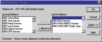 Экран 3: Настройка параметров WINS и DNS При необходимости настроить WINS и DNS нужно ввести IP-адреса соответствующих серверов. В диалоге DHCP Manager выберите DHCP Options. Можно настраивать параметры отдельно для каждого диапазона, но, как правило, они задаются глобально. При наличии в сети нескольких подсетей обычно используется один-два сервера WINS и DNS. Как показано на экране 3, значения каждого параметра по умолчанию можно изменить. Выберите параметр в списке слева, нажмите Add. Во многих случаях, например для присвоения адреса WINS-сервера, придется воспользоваться функцией Edit Array. После ее активизации DHCP предоставляет необходимую информацию клиентским компьютерам. Экран 3 показывает, как настроаиваются наиболее часто используемые параметры (с использованием Add для выбора и Values для модификации). Параметр 003 - это адрес маршрутизатора или используемого по умолчанию шлюза, 006 - адрес DNS-сервера, а 044 - адрес WINS-сервера. При выборе 044 необходимо также выбрать 046 - тип узла WINS. Срок арендыDHCP присваивает IP-адреса на определенный срок, "сдает в аренду". По истечение половины этого срока клиент отправляет DHCP-серверу прямое сообщение с запросом о возобновлении аренды. Если сервер доступен, он ее продлевает. В противном случае клиент снова посылает запрос по истечение половины остатка интервала, и так далее. Если срок аренды 3 дня (72 часа), то клиент пытается возобновить его через 36 ч, 54 ч и 63 ч. Наконец, клиент отправляет широковещательный запрос ко всем DHCP-серверам. Если до окончания срока аренды клиент не находит сервер, компьютер утрачивает соединение с TCP/IP-сетью. Оставаясь подключенным или возобновляя подключение, клиент сохраняет свой IP-адрес. Однако, если клиент допускает истечение срока аренды, DHCP восстанавливает этот адрес и делает его доступным для других клиентов. Длительность процесса восстановления может быть в несколько раз большей, чем срок аренды. В относительно стабильных средах его можно устанавливать в 3-4 суток. Такой интервал дает пользователям возможность выключать свои компьютеры более чем на два выходных без потери IP-адресов, и позволяет DHCP восстанавливать IP-адрес в течение нескольких дней после того, как один из компьютеров был удален из сети. Однако если к примеру сотрудники находящегося в вашем ведении отдела сбыта пользуются своими офисными компьютерами лишь по нескольку часов раз в неделю, срок аренды стоить сократить до 4-6 часов. Таким образом DHCP будет высвобождать IP-адреса уже на следующий день после использования. Казалось бы, если компьютеры не перемещаются постоянно с места на место, имеет смысл назначить неограниченный срок аренды. Однако, если один из компьютеров с неограниченным сроком аренды IP-адреса удалить из сети, DHCP не восстановит его для дальнейшего использования. Поскольку запросы на возобновление срока аренды делаются при помощи широковещательных сообщений, которые не проходят через маршрутизаторы, вы, возможно, зададитесь вопросом - обязательно ли вообще держать по DHCP-серверу (а следовательно, и NT-серверу) в каждой подсети. К счастью, ответ - да. Рабочая станция с NT может выполнять роль агента-ретранслятора DHCP. Приняв DHCP-запрос, агент пересылает его напрямую серверу. Таким образом агент исполняет для клиента посредническую функцию, и тот получает IP-адрес. DHCP-сервер знает, из какой подсети пришел запрос, и назнача