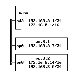 В такой конфигурации ws.3.1 отлично сможет общаться с машинами из сети 192.168.3.0/24 и с машинами вне сегмента локальной сети. При попытке же обратиться к машине того же сегмента, но другой IP-сети, пакет будет послан на шлюз. Шлюз знает, что пакеты с этим адресом надо послать в ту локальную сеть; но некоторые операционные системы работают по алгоритму маршрутизации, в котором запрещено посылать пакет туда, откуда он пришел - это делается для того, чтобы избежать зацикливания пакетов.