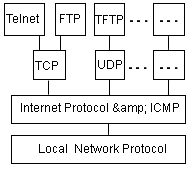 Протокол Internet взаимодействует с одной стороны с протоколами передачи информации между хост-компьютерами, а с другой - с протоколами локальной компьютерной сети. При этом локальная сеть может являться малой компьютерной сетью, участвующей в создании большой сети, такой как ARPANET.