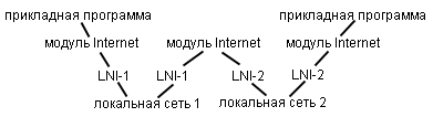 Предположим, что перенос будет включать прохождение одного промежуточного шлюза. Отправляющая прикладная программа готовит свои данные и вызывает свой локальный Internet модуль для отправки этих данных в качестве датаграммы, а в качестве аргументов этого вызова передает адрес получателя и другие параметры.