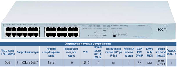 Коммутатор 3Com SuperStack 3 Switch 4400 использовался нами для построения ЛВС с сетевой аутентификацией по протоколу 802.1X