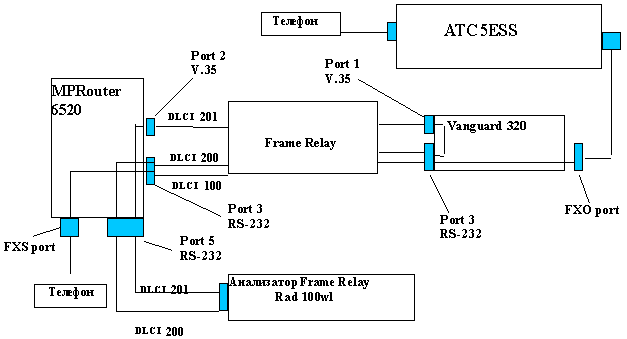 Проблемы передачи голоса и данных по каналам Frame RelayВоробьев А.А., аспирант ГУТ им. проф. Бонч-Бруевича Развитие высокоскоростных технологий передачи данных по каналам Frame Relay делает все более актуальной задачу обеспечения надежной голосовой связи в качестве дополнительной услуги. Принципиальные трудности использования каналов Frame Relay для одновременной передачи речи и данных кроются в принципах передачи и обработки пакетов на узлах Frame Relay, а также в особенностях речевых пакетов. Как известно, речевые сообщения, в отличие от информационных весьма критичны к задержкам. Речевые пакеты следуют с неодинаковой скоростью, чередуясь с длительными паузами. При этом при интенсивной передаче данных весьма вероятно превышение суммарного трафика пропускной способности узла Frame Relay. В такой ситуации, как известно, "лишние блоки" отбрасываются узлом. Потери значительного количества блоков могут привести как к пропаданию части речевых фраз, так и к замедлению, а иногда и к обрыву передачи данных. Целью настоящего исследования является установление границ загрузки узлов Frame Relay, при которых влияние речи приводит к обрыву передачи данных. Для проведения исследования был использован тестовый канал Frame Relay, оборудование доступа в сети Frame Relay компании Motorola ISG, анализатор пакетов Frame Relay. Vanguard 320 - это компактное устройство доступа персональных компьютеров, рабочих станций, терминалов к сетям Frame Relay, X.25, ISDN общего и частного пользования. Vanguard 320 поддерживает передачу голоса по Frame Relay через Voice Relay Option Card (Голосовая Карта). Voice Relay Option Card поддерживает один FXO или FXS порт, позволяя передавать голос вместе с данными. MPRouter 6520 является устройством доступа и коммутации в сетях Frame Relay, X.25, ISDN общего и частного пользования. MPRouter 6520 имеет 5 последовательных портов: 1-2 DIM порты (V.35, V.36, V.11, V.24); 3-5 - EIA-232D DCE порты; 6 порт - асинхронный для CTP. Возможность дополнительного расширения до 8 различных типов карт, в том числе голосовых: FXS, FXO, E1/T1 карта, Аналоговая и Цифровая E&M, Voice Server Card. Голосовая опция включает до 12 аналоговых портов, которые поддерживают E&M и FXS сигнализацию, а также до 28 цифровых каналов по E1/T1 потоку. Голосовые каналы компрессируются со скоростями 8 и 16 Кбит /с и передаются по сетям Frame Relay, используя технологию Motorola Voice Relay® Принципы передачи голоса по технологии Voice Relay.Voice Relay® позволяет передавать данные и голос по одному DLCI. Voice Relay® определяет присутствие или отсутствие голосового трафика и при наличии голоса сегментирует данные в более мелкие сегменты (при необходимости). Voice Relay® ограничивает передачу пакетов с данными до двух между двумя речевыми пакетами. Это позволяет сохранять переменную длину пакетов, если голосовые пакеты отсутствуют в течение 30 секунд. При необходимости Voice Relay® , сегментирует кадры с голосом в пакеты с фиксированной длиной для обеспечения постоянной задержки. Voice Relay® обеспечивает приоритет голосовых пакетов над пакетами с данными. Voice Relay® использует SVC для передачи голоса, а следовательно адресацию и маршрутизацию по правилам X.25. Для инкапсуляциии X.25 в Frame Relay используется протокол Annex_G. До 15 голосовых SVC могут быть установлены на одной станции Annex_G. Voice Relay® использует 8K и 16K CVSELP (технология компресси голоса, разработанная и запатентованная Motorola) компрессию голоса, а также используются процедуры эхоподавления и DSI (Цифровая Интерполяция