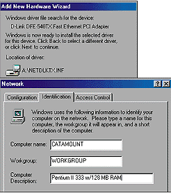Установите сетевое ПО. Подключите ПК к источнику питания и включите его. Система Windows 9х должна определить новую сетевую плату и попросить указать местоположение ПО. В зависимости от установленной версии Windows порядок действий, которые необходимо выполнить, может несколько отличаться, поэтому внимательно читайте появляющиеся на экране инструкции. Большинство сетевых плат или комплектов поставляются вместе с драйверами на дискете или компакт-диске. Укажите ОС надлежащий дисковод. Во время установки драйвера на экране будут появляться сообщения — может также потребоваться вставить компакт-диск с дистрибутивом Windows 9х. В некоторый момент времени необходимо будет ввести уникальное имя компьютера (для идентификации его в сети) и имя рабочей группы (как правило, лучшим выбором обычно является просто «workgroup»). Для каждого ПК задайте одно и то же имя рабочей группы, в противном случае компьютеры не смогут распознать друг друга в сети. По запросу перезагрузите ПК.