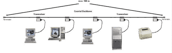 Примеры применения технологии 10Base-5Применение технологии 10Base-5 на одном коаксиальном сегменте