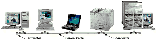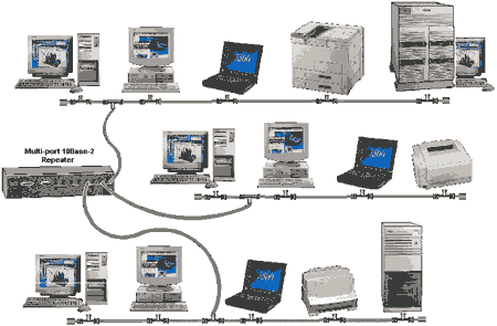 Примеры применения технологии 10Base-2Ethernet технологии 10Base-2 на одном коаксиальном сегменте