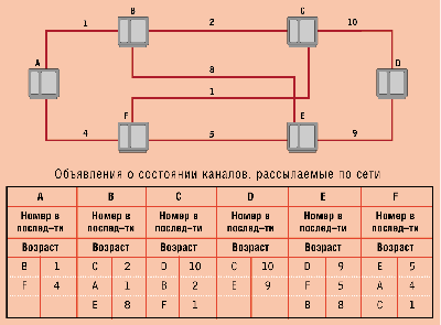Современные протоколы маршрутизацииLAN/ЖУРНАЛ СЕТЕВЫХ РЕШЕНИЙ #12/98 Несмотря на кажущуюся сложность и многообразие, протоколы маршрутизации базируются всего на двух простых алгоритмах, известных уже несколько десятилетий. Алексей Савельев Для выполнения своей основной функции - переключения трафика - каждый маршрутизатор использует таблицу, в которой отражена топология сети на данный момент времени. В самом общем случае таблица маршрутизации содержит адрес сети назначения, адрес следующего узла на пути к этой сети и метрику (стоимость) пути. Создание и последующее обновление таблицы маршрутизации при изменении топологии сети осуществляется с помощью протоколов маршрутизации. Наибольшей популярностью пользуются протоколы динамической маршрутизации. Алгоритм Беллмана-Форда (также известный как алгоритм Форда-Фулкерсона) был положен в основу первого протокола маршрутизации, созданного для сети ARPANET. Так называемые протоколы вектора расстояния (distance vector protocols), такие, как RIP, IGRP, BGP, используют те же принципы. В 1979 году на смену протоколу вектора расстояний пришел протокол состояния канала (link state protocol), ставший основным в ARPANET. Современные протоколы состояния канала включают OSPF, IS-IS, NLSP и др. В настоящее время оба типа протоколов нашли себе применение, так как у каждого из них есть свои достоинства и недостатки. Желающие ознакомиться с деталями реализации конкретных протоколов могут обратиться к ресурсам Internet (http://www.lanmag.ru , http://www.citforum.ru), мы же сосредоточимся на общих принципах, легших сегодня в основу протоколов маршрутизации. В порядке старшинства мы начнем с протоколов вектора расстояний. ПОРОЧНЫЙ КРУГОсновное преимущество алгоритма вектора расстояний - его простота. Действительно, в процессе работы маршрутизатор общается только с соседями, периодически обмениваясь с ними копиями своих таблиц маршрутизации. Получив информацию о возможных маршрутах от всех соседних узлов, маршрутизатор выбирает путь с наименьшей стоимостью и вносит его в свою таблицу. Достоинство этого элегантного алгоритма - быстрая реакция на хорошие новости (появление в сети нового маршрутизатора), а недостаток - очень медленная реакция на плохие известия (исчезновение одного из соседей). В качестве примера мы рассмотрим сеть (см. Рисунок 1) из нескольких последовательно соединенных маршрутизаторов, где метрикой является число транзитных узлов на пути к точке назначения (как в протоколе RIP).