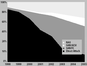Рис. 7. Динамика технологий хранения По аналогии с телекоммуникационными системами управления, на рынке систем SAM крупные игроки с целью расширения функциональности своих решений могут выбрать стратегию поглощения компаний с узкоспециализированными решениями. Развитие решений SAM повлечет за собой необходимость разработки общепринятых стандартов и технологий, что позитивно скажется на дальнейшем использовании и внедрении корпоративными заказчиками систем хранения. ИТ-департаменты уже задумываются над емкой английской фразой: «Think SAM, not SAN». И причиной тому выступает неприязнь к «слепому» приобретению все новых и новых серверов и систем хранения, которая сменяется обоснованным выбором интеллектуальных решений в области управления. Такие решения должны стать ключом к оптимизации и сокращению затрат на приобретение нового оборудования, а также позволят контролировать процессы, проистекающие в среде хранения данных. Вадим Саякин (svy@nvconsulting.net) — генеральный директор компании NV Consulting (Москва). На международной конференции НР Software Universe программные средства управления хранением хотя и не стали центральной темой, тем не менее, выступили важнейшей составной частью предложений Hewlett-Packard в области программного обеспечения и одним из механизмов реализации новой стратегии компании по созданию платформы адаптивного управления информационной инфраструктурой. Во время конференции Генеральный менеджер подразделения НР Network Storage Solutions EMEA по программному бизнесу Отмар Шнайдер ответил на вопросы редактора журнала «Открытые системы» Натальи Дубовой. В чем суть предложений НР по управлению хранением? Программное обеспечение управления хранением образует стек, включающий три основных уровня. Нижний уровень — инфраструктурное программное обеспечение для работы с дисковыми массивами: репликация данных, клонирование данных, создание мгновенных виртуальных образов логических томов (snapshot), выбор безопасного пути доступа и т.д. Средний уровень — уровень виртуализации. Верхний — собственно программные средства управления хранением, которые надо рассматривать в двух аспектах. Во-первых, это управление ресурсами хранения (storage resource management, SRM), а во-вторых, управление данными. Заказчики хотят, чтобы им гарантировали определенное время доступа к данным, определенную работоспособность приложений, хотят быть уверенными, что их ИТ-инфраструктура хранения работает и обеспечивает заданное качество сервиса. И в то же время, мы должны обеспечить выполнение политики защиты хранения, гарантированное время восстановления, что предполагает некоторую избыточность данных и т.д. Программное обеспечение этого уровня мы продолжаем продвигать на рынок под маркой OpenView, поскольку это часть общего управления информационной средой компании. Одновременно, мы развиваем сотрудничество с другими компаниями, чтобы иметь возможность управлять устройствами хранения от ЕМС, IBM, Hitachi и т.д., так как программные функции этого уровня зависят от аппаратной платформы хранения. Что касается виртуализации, то я рассматриваю ее не как потребительское решение, а как технологию, которая открывает новые возможности в использовании ресурсов хранения. Виртуализация, на самом деле, тоже возможна на разных уровнях. Уже существуют вполне зрелые реализации этой техноло
