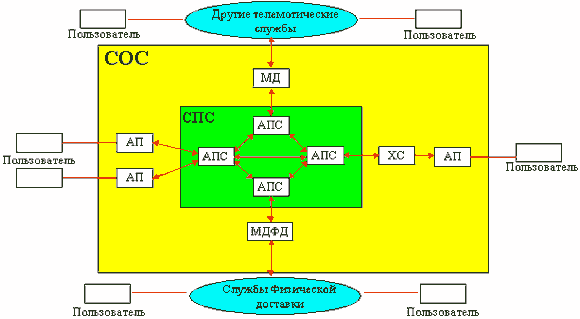 Рис.1 Описание модели СОССистема управления сообщениями на основе рекомендаций Х.400 представляет два основных вида услуг: