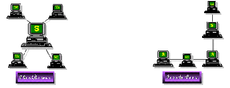 - Сети с архитектурой клиент-сервер используют центральный сервер для обслуживания запросов клиентов, тогда как одноранговые сети позволяют любой рабочей станции функционировать одновременно в качестве сервера, если этого требуют задачи.