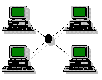 При использовании топологии "звезда", каждый компьютер подключается к специальному концентратору (хабу). Преимуществом этой топологии является ее устойчивость к повреждениям кабеля - при обрыве перестает работать только один из узлов сети и поиск повреждения значительно упрощается. Недостатком является более высокая стоимость. Кольцо.
