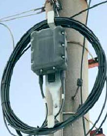 Рисунок 17. Муфта в пластиковом корпусе с креплением технологического запаса кабеля на опоре