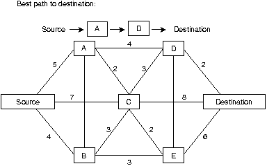 Последнее поле в заголовке маршрутизации DNA Phase IV-поле траверсированных узлов ( nodes traversed ), которое показывает число узлов, которые пересек пакет на пути к пункту назначения. Это поле обеспечивает реализацию подсчета максимального числа пересылок для того, чтобы можно было удалить из сети вышедшие из употребления пакеты. DECnet различает два типа узлов: конечные узлы и узлы маршрутизации. Как конечные узлы, так и узлы маршрутизации могут отправлять и принимать информацию, но обеспечивать услуги маршрутизации для других узлов DECnet могут только узлы маршрутизации. Маршрутные решения DECnet базируются на затратах (cost)-арбитражном показателе, назначаемом администратором сети для использования при сравнении различных путей через среду об'единенной сети. Затраты обычно базируются на числе пересылок, ширине полосы носителя и других показателях. Чем меньше затраты, тем лучше данный тракт. Если в сети имеют место неисправности, то протокол маршрутизации DECnet Phase IV использует значения затрат для повторного вычисления наилучшего мааршрута к каждому пункту назначения. Рис. 17-3 иллюстрирует расчет затрат в среде маршрутизации DECnet Phase IV.