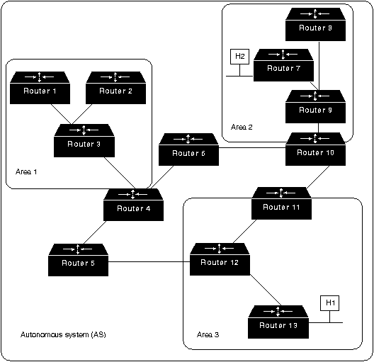 (Информация о IS-IS дается в Главе 28 "Maршрутизация OSI"). Как видно из его названия, OSPF имеет две основных характеристики. Первая из них-это то, что протокол является открытым, т.е. его спецификация является общественным достоянием. Спецификация OSPF опубликована в форме Запроса для Комментария (RFC) 1247. Второй его главной характеристикой является то, что он базируется на алгоритме SPF. Алгоритм SPF иногда называют алгоритмом Dijkstra по имени автора, который его разработал. Основы технологииOSPF является протоколом маршрутизации с об'явлением состояния о канале (link-state). Это значит, что он требует отправки об'явлений о состоянии канала (link-state advertisement - LSA) во все роутеры, которые находятся в пределах одной и тойже иерархической области. В oб'явления LSA протокола OSPF включается информация о подключенных интерфейсах, об использованных показателях и о других переменных. По мере накопления роутерами OSPF информации о состоянии канала, они используют алгоритм SPF для расчета наикратчайшего пути к каждому узлу. Являясь алгоритмом с об'явлением состояния канала, OSPF отличается от RIP и IGRP, которые являются протоколами маршрутизации с вектором расстояния. Роутеры, использующие алгоритм вектора расстояния, отправляют всю или часть своей таблицы маршрутизации в сообщения о корректировке маршрутизации, но только своим соседям. Иерархия маршрутизацииВ отличие от RIP, OSPF может работать в пределах некоторой иерархической системы. Самым крупным об'ектом в этой иерархии является автономная система (Autonomous System - AS) AS является набором сетей, которые находятся под единым управлением и совместно используют общую стратегию маршрутизации. OSPF является протоколом маршрутизации внутри AS, хотя он и способен принимать маршруты из других AS и отправлять маршруты в другие AS. Любая AS может быть разделена на ряд областей (area). Область - это группа смежных сетей и подключенных к ним хостов. Роутеры, имеющие несколько интерфейсов, могут участвовать в нескольких областях. Такие роутеры, которые называются роутерами границы областей (area border routers), поддерживают отдельные топологические базы данных для каждой области. Топологическая база (topological database) данных фактически представляет собой общую картину сети по отношению к роутерам. Топологическая база данных содержит набор LSA, полученных от всех роутеров, находящихся в одной области. Т.к. роутеры одной области коллективно пользуются одной и той же информацией, они имеют идентичные топологические базы данных. Термин "домен" (domain) исользуется для описания части сети, в которой все роутери имеют идентичную топологическую базу данных. Термин "домен" часто используется вместо AS. Топология области является невидимой для об'ектов, находящихся вне этой области. Путем хранения топологий областей отдельно, OSPF добивается меньшего трафика маршрутизации, чем трафик для случая, когда AS не разделена на области. Разделение на области приводит к образованию двух различных типов маршрутизации OSPF, которые зависят от того, находятся ли источник и пункт назначения в одной и той же или разных областях. Маршрутизация внутри области имеет место в том случае, когда источник и пункт назначения находятся в одной области; маршрутизация между областями - когда они находятся в разных областях. Стержневая часть OSPF (backbone) отвечает за распределение маршрутной информац