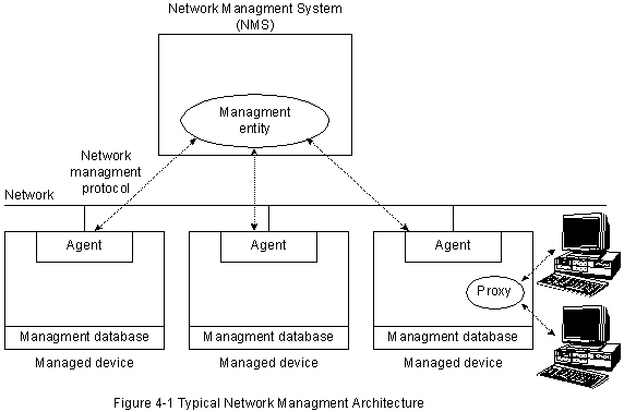 Глава 4. Основы управления сетями.Библиографическая справкаНачало 1980гг. ознаменовалось резким ростом в области применения сетей. Как только компании поняли, что сетевая технология обеспечивает им сокращение расходов и повышение производительности, они начали устанавливать новые и расширять уже существующие сети почти с такой же скоростью, с какой появлялись новые технологии сетей и изделия для них. К середине 1980гг. стали очевидными проблемы, число которых все более увеличивалось, связанные с этим ростом, особенно у тех компаний, которые применили много разных (и несовместимых) технологий сети. Основными проблемами, связанными с увеличением сетей, являются каждодневное управление работой сети и стратегическое планирование роста сети. Характерным является то, что каждая новая технология сети требует свою собственную группу экспертов для ее работы и поддержки. В начале 1980гг. стратегическое планирование роста этих сетей превратилось в какой-то кошмар. Одни только требования к числу персонала для управления крупными гетерогенными сетями привели многие организации на грань кризиса. Насущной необходимостью стало автоматизированное управление сетями (включая то, что обычно называется "планированием возможностей сети"), интегрированное по всем различным окружениям. В настоящей главе описываются технические характеристики, общие для большинства архитектур и протоколов управления сетями. В ней также представлены 5 функциональных областей управления , определенных Международной Оврганизацией по Стандартизации (ISO). Архитектура управления сетиБольшинство архитектур управления сети используют одну и ту же базовую структуру и набор взаимоотношений. Конечные станции (managed devices - управляемые устройства), такие как компьютерные системы и другие сетевые устройства, прогoняют программные средства, позволяющие им посылать сигналы тревоги, когда они распознают проблемы. Проблемы распознаются, когда превышен один или более порогов, заданных пользователем. Management entities (управляющие об'екты) запрограммированы таким образом, что после получения этих сигналов тревоги они реагируют выполнением одного, нескольких или группы действий, включающих: