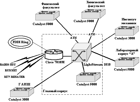 ![]() Рис. 7.3. Магистральная сеть Московского государственного университета