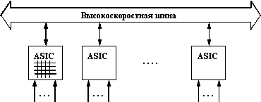 ![]() Рис. 4.1. Коммутатор на процессоре общего назначения Основным недостатком таких коммутаторов была их низкая скорость. Универсальный процессор никак не мог справиться с большим объемом специализированных операций по пересылке кадров между интерфейсными модулями. Для ускорения операций коммутации нужны были специализированные процессоры со специализированными средствами обмена данными, как в первом коммутаторе Kalpana, и они вскоре появились. Теперь коммутаторы используют заказные специализированные БИС, которые оптимизированы для выполнения основных операций коммутации. Часто в одном коммутаторе используется несколько специализированных БИС, каждая из которых выполняет функционально законченную часть операций. В настоящее время коммутаторы используют в качестве базовой одну из трех схем взаимодействия своих блоков или модулей: