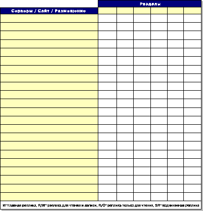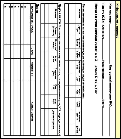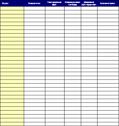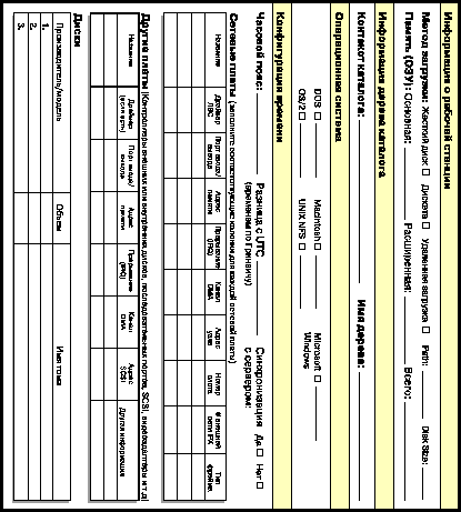 Figure Appendix-C-7. Карточка сервера NetWare 4 Таблица размещения репликНиже приведен пример шаблона таблицы размещения реплик Figure Appendix-C-8. Таблица размещения реплик Миграция серверовНиже приведен пример шаблона таблицы миграции серверов. Figure Appendix-C-9. Таблица миграции серверов Карточка конфигурации рабочей станцииНиже приведен пример шаблона карточки конфигурации рабочей станции. Figure Appendix-C-10. Карточка конфигурации рабочей станции