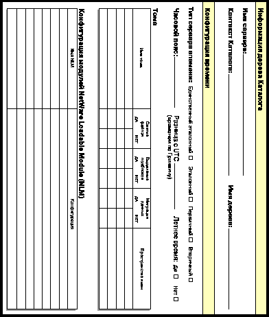 Figure Appendix-C-4. Шаблон графика внедрения Стандарты именованияНиже приведен шаблон документа о стандартах именования элементов службы КаталогаTM (NDSTM ). Figure Appendix-C-5. Стандарты именования Карточка сервера NetWare 4Ниже приведен пример шаблона карточки сервера NetWare 4. Figure Appendix-C-6. Карточка сервера NetWare 4