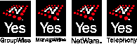 Обеспечение совместимости с NetWareПеред покупкой приложений следует определить, совместимы ли они с NetWare. Примерно 5000 пакетов программ являются совместимыми и зарегистрированы в Novell®. Информация о совместимости является важной, поскольку некоторые приложения при работе в NetWare могут вызвать повреждение данных или затруднить работу пользователей. Информацию о совместимости с NetWare и регистрации приложения можно получить через NetWire® или у местного торгового представителя Novell. Также можно связаться непосредственно с поставщиком программного обеспечения. Yes Program фирмы NovellЧтобы убедиться в совместимости с NetWare, поищите какой-либо из следующих логотипов.