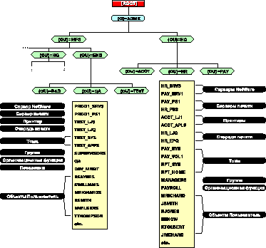 Например, если принтер используется двумя разными отделами, для которых имеются отдельные контейнеры Подразделение, объект Принтер следует поместить на уровне, расположенном над двумя контейнерами Подразделение для этих отделов.