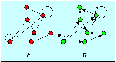 Рис. 10.21.7. Рассмотренный алгоритм сходен с алгоритмом Дикстры, используемым для поиска наилучшего пути во внутреннем протоколе маршрутизации ospf. Выбранный метод аналитического представления графа достаточно прост, но требует для графа с N узлами N2 ячеек памяти (бит). Впрочем, для неориентированного графа матрица является симметричной и для ее хранения в памяти ЭВМ достаточно N(N-1)/2 ячеек. Это справедливо и для ориентированных графов без петель. Петлей называется ребро графа, которое начинается и завершается в одном и том же узле (рис. 10.21.8).