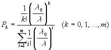При t ® Ґ переходные вероятности pij(t) экспоненциально стремятся к своим окончательным значениям Pj, j=0,…,m. Окончательные вероятности Pj могут быть найдены из системы: -l0P0+lP1=0 l0Pk-1 - (l0+kl)Pk + (k+1)lPk+1 =0 (1Ј k<m) l0pm-1+ml Pm=0 решение которой имеет вид: