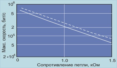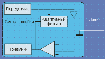 На практике линейное выравнивание и эквилизация с обратной связью совмещаются друг с другом и со специальными методами формирования передаваемых сигналов. Проблема усугубляется тем, что одна и та же линия используется для передачи данных в обоих направлениях одновременно. Для улучшения отношения сигнал/шум следует поднимать амплитуду передаваемого по линии сигнала. Выбранное значение определяется требованиями перекрестных наводок и возможностями существующих БИС. В результате компромисса выбрана амплитуда 2.5 В на нагрузке 135 ом. Любые нелинейные искажения должны быть менее 36 дБ по отношению к основному сигналу. Учитывая динамический диапазон сигналов в линиях связи, отношение сигнал шум предполагается равным 20 дБ, что соответствует ограничению 6дБ на число ошибок 1/106 для гауссова распределения шума. При аналого-цифровом преобразовании одному биту соответствует 6 дБ. Обычно двухпроводная линия (тем более 4-х проводная) используется для одновременного двухстороннего обмена (full duplex). Эта задача может быть решена схемотехнически мультиплексированием по времени (TDD - Time Division Duplex) или частоте (FDD - Frequency Division Duplex). TDD довольно легко реализовать, этот метод не требует сложных фильтров и эквилайзеров. Метод TDD привлекателен при малых длинах кабеля для коммутируемых телефонных сетей. ![]() Рис. 2.1.5. Схема эхо-компенсации Более широко для реализации двухстороннего обмена по одной паре проводов используется метод эхо-компенсации. Этот метод предполагает вычитание передаваемого сигнала из принимаемого, определяя тем самым истинную форму входного сигнала. Если на приведенном рисунке 2.1.5 Zвх равно волновому сопротивлению линии, то выходной сигнал передатчика не будет влиять на работу приемника. Здесь предполагается, что выходное сопротивление передатчика много меньше z= zлинии. Учитывая вариации ослабления сигнала, схема эхо-компенсации должна уметь работать в очень широком динамическом диапазоне амплитуд, сохраняя удовлетворительную линейность. Это обстоятельство, а также зависимость zлинии от частоты, приводит к заметному усложнению схем эхо-компенсации (Рис. 2.1.6). Системы эхо-компенсации весьма чувствительны к временному разбросу срабатывания пороговых схем, так как это приводит к фазовому сдвигу вычитаемых друг из друга сигналов. ![]() Рис. 2.1.6. Схема эхо-компенсации с адаптивным фильтром На рис. 2.1.7 показана зависимость скорости пропускания от сопротивления петли передающей линии для разных схем кодирования сигнала (пунктирной линией отображен вариант четырехуровневого кодирования). Те, кто работал с выделенными линиями, усвоили эту зависимость на практике. Если сопротивление линии более 1,5 кОм вы скоро будете знать дежурных вашей телефонной станции по имени, узнаете, что такое грозовые вставки и что они имеют привычку окисляться.