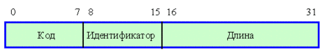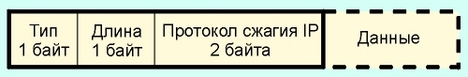 Рис. 3.5.4. Формат пакета IPCP. Младшие биты слева. Поле тип содержит 2, в поле длина заносится число байт в пакете (≥4). В поле протокол сжатия IP заносится код алгоритма сжатия (0х02D - в случае алгоритма Ван Джекобсона). Поле данные может содержать нуль или более октетов. Конфигурационный запрос может потребовать присылки (присвоения) IP-адреса. Для решения этой задачи предусмотрена опция IPCP-пакета, где поле тип=3, длина=6, а последующие 4 байта выделены для IP-адреса, куда отправитель должен его записать. Если туда записаны нули, это говорит о том, что отправитель запрашивает свой IP-адрес. Протоколы PPP, LCP (Link Control Protocol), CCP (Compression Control Protocol; RFC-1962, -1967), и некоторые другие управляющие протоколы содержат 8-битовые поля код. Значения этих кодов приведены в таблице 3.5.2. Таблица 3.5.2 Значения поля код LCP-заголовка