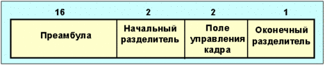 Рис. 4.1.6.5. Формат пакета протокола FDDI Вычитая 8 байт LLC/SNAP заголовка, получаем значения максимального размера пакета (MTU) 4470 (4478) октетов. Для совместимости размер пакетов для IP-дейтограмм и ARP-пакетов согласуется с требованиями конкретной сети. FDDI реализует маркерный доступ, формат пакета-маркера имеет вид, показанный на рис. 4.1.6.6. В зависимости от размера кольца в нем могут циркулировать несколько маркеров.