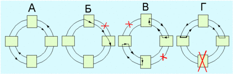 Рис. 4.1.6.8. Варианты связей в случае обрывов волокон Назад: 4.1.5. Локальные сети ArcNet |