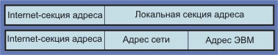 Рис. 4.1.1.3.2.а. Специальные ip-адреса IP-адрес имеет Интернет- и местную секции, первая характеризует место (организацию, сеть или даже группу сетей), вторая - конкретную ЭВМ. Местная секция адреса может быть разделена на части, характеризующие локальную сеть и конкретную ЭВМ (рис. 4.1.1.3.3).